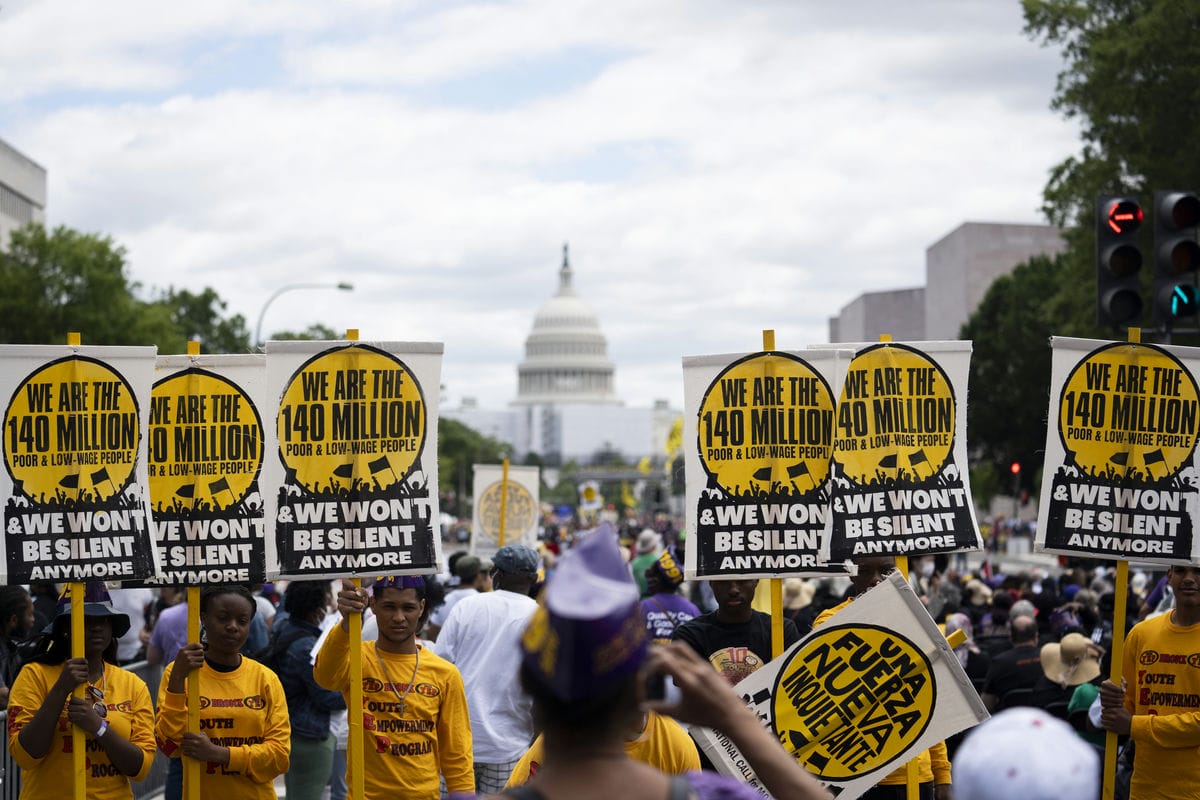 2022年6月18日,来自美国全国各地的数千民众在华盛顿国会大厦附近举行集会,抗议美国根深蒂固的种族歧视以及由此引发的经济不公等一系列社会问题。凯发k8官网记者刘杰摄